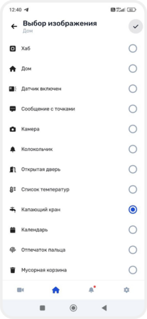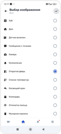 Выберите иконку для отображения виджета и подтвердите её, нажав галочку