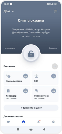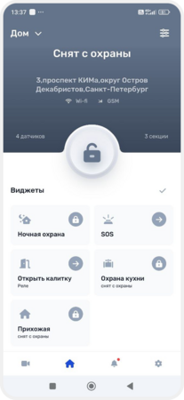 рядом с виджетами. Теперь на главном экране появится кнопка, с помощью которой вы сможете быстро ставить и снимать охрану.