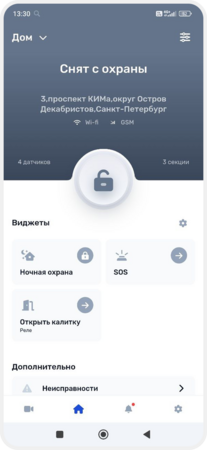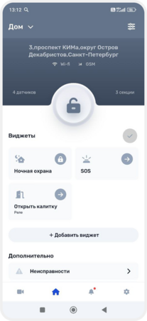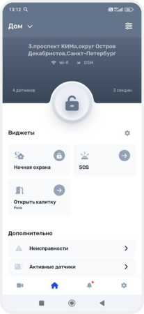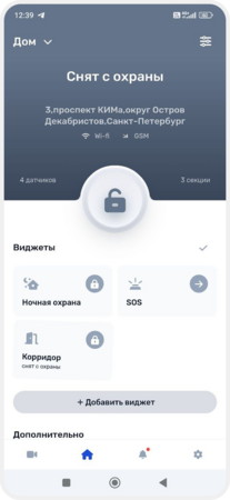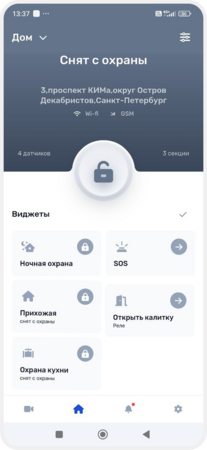 Виджеты — это интерактивные элементы управления, которые помогают быстро взаимодействовать с вашей системой безопасности прямо с главного экрана приложения.