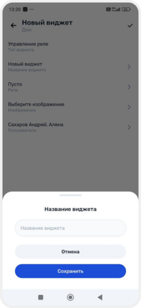 3. В появившемся списке выберите тип виджета — «Управление реле»