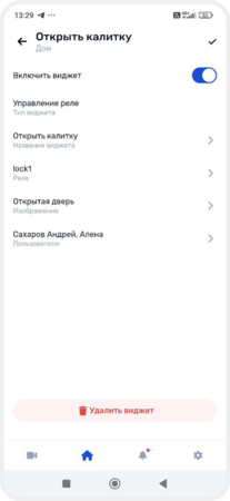Если вы хотите управлять замком, светом, сиреной или другим подключённым устройством, настройте виджет для реле:
