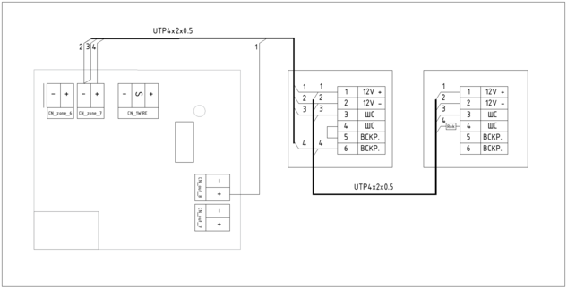 Подключите сигнальный провод от шлейфа к клемме +CN_ZONE