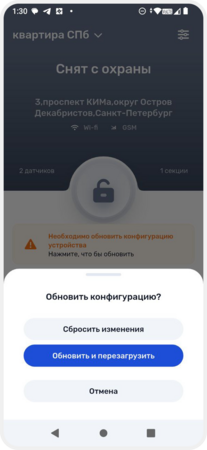 В верхней части появится уведомление «Необходимо обновить конфигурацию устройства» — нажмите на него3. Подтвердите обновление кнопкой «Обновить и перезагрузить»4. Дождитесь окончания обновления. Если передумали, можно нажать «Сбросить изменения»