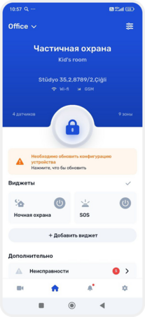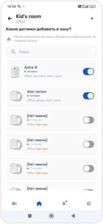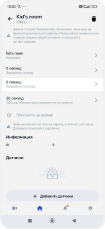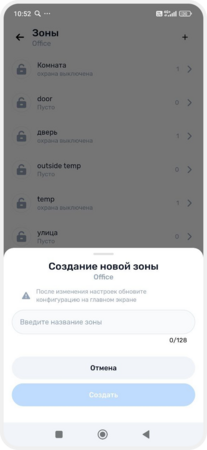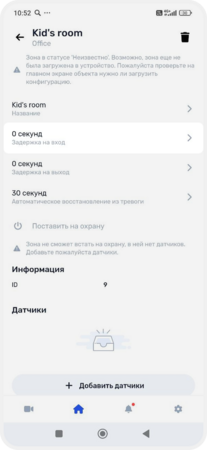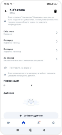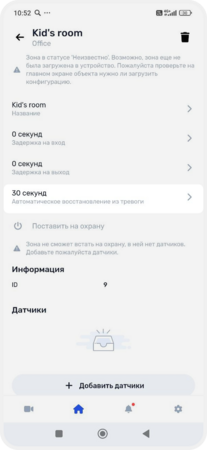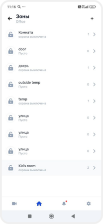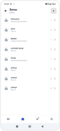 В зону можно объединить датчики, выходы, исполнительные устройства и камеры — например, создать зоны «Дом», «Гараж», «Гостиная» или «Двор». Так удобнее следить за состоянием системы, включать и выключать охрану, управлять устройствами и получать уведомления о событиях в конкретной зоне.