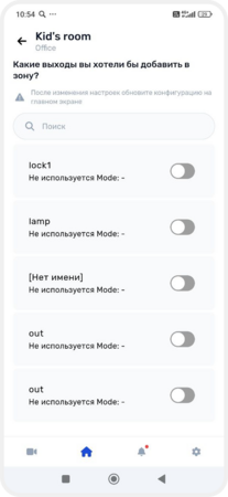 Добавление датчиков и выходов в зону