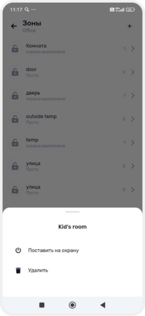 3. Нажмите «Поставить на охрану» — зона перейдёт в режим охраны