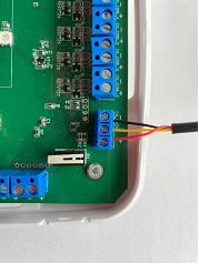 Подключите провод считывателя к клемме 1-Wire на контроллере (эта же клемма используется для подключения температурных датчиков)