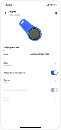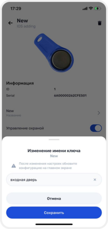 После того как ключ считан, вы можете изменить его название, а также назначить ему функцию управления: