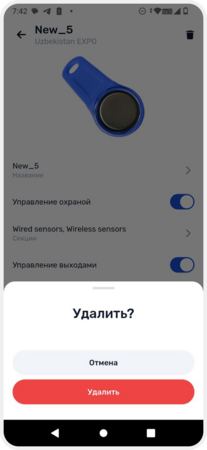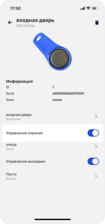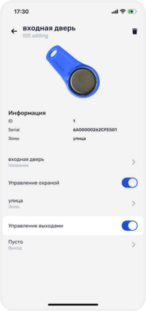 Управление выходом — выберите нужный выход (например, замок или освещение), которым должен управлять ключ