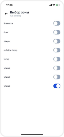 Управление охраной — выберите зону, которую будет ставить/снимать этот ключ