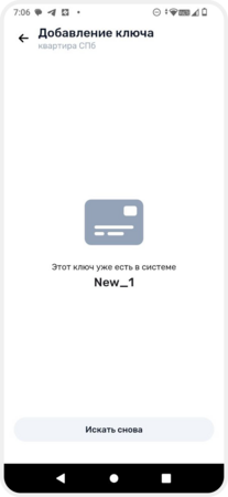В этом случае нажмите «Искать снова» снова и поднесите другой, ещё не зарегистрированный ключ.