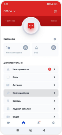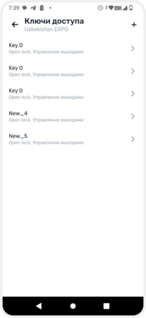 1. Перейдите в «Ключи доступа» на главном экране объекта